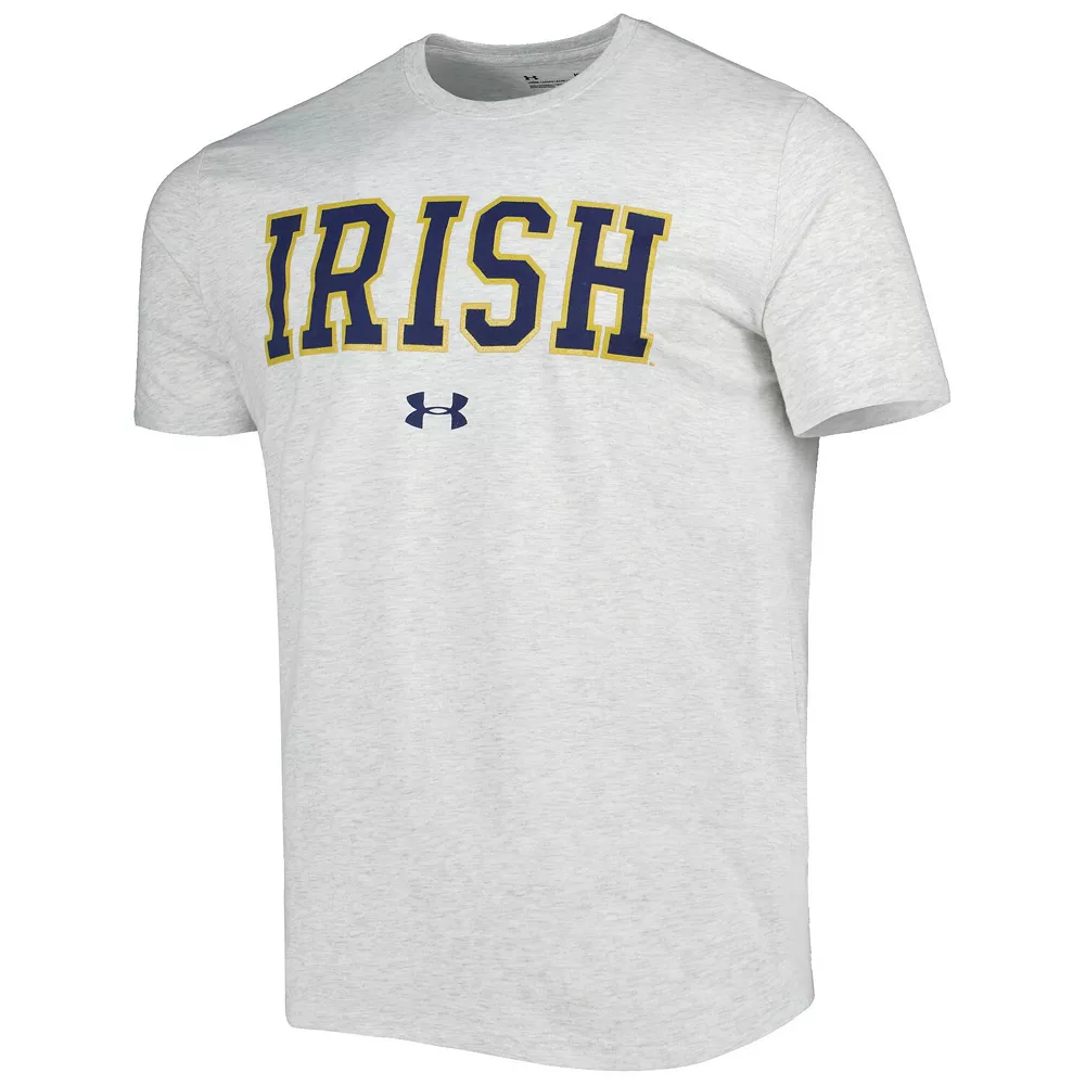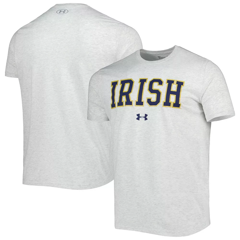 Enjoy a laid-back display of your devotion to the Notre Dame Fighting Irish by grabbing this T-shirt from Under Armour. It features Notre Dame Fighting Irish graphics printed across the chest and a classic crew neck that makes it easy to create a winning casual outfit. Plus, the cotton-polyester fabric offers a comfortable fit and feel.