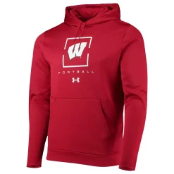Show that cooler temperatures have no bearing on your Wisconsin Badgers spirit with this Football hoodie from Under Armour. It features a bold football graphic and a Wisconsin Badgers logo printed on the chest along with a classic front pouch pocket for convenient, small-item storage. Plus, the fleece lining and midweight design makes this pullover a comfy choice for cooler days.